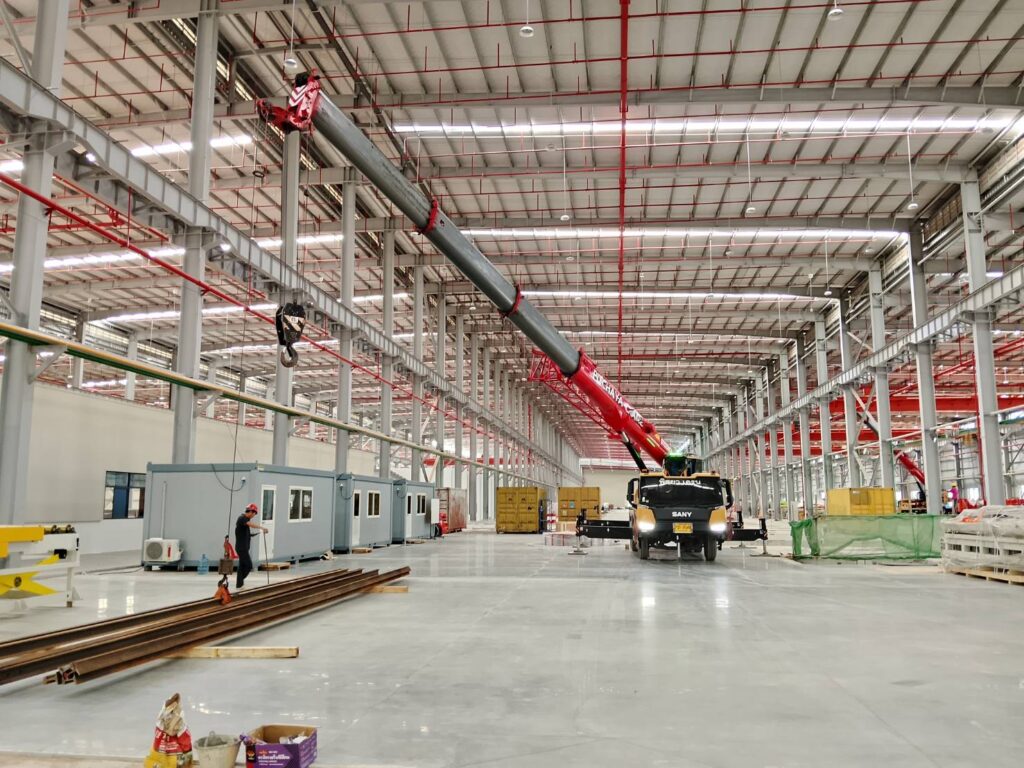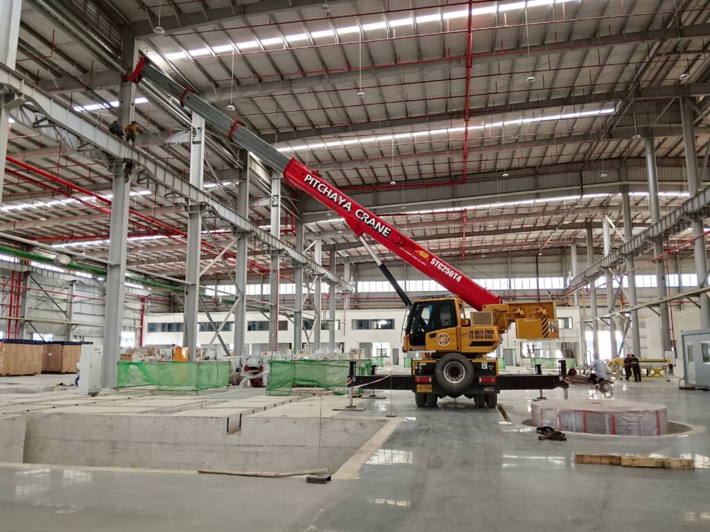 รถเครน 25 ตัน ยกติดตั้งรางเครนภายในโรงงาน โดยพิชยาเครน