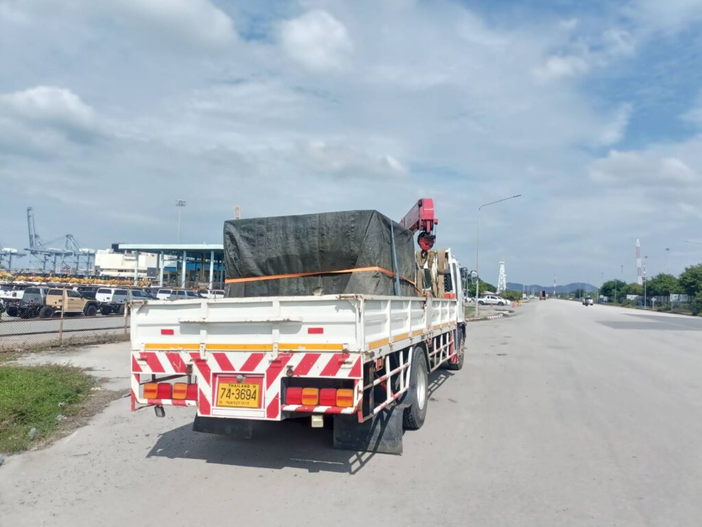 รถเฮี๊ยบ 6 ล้อ ขนย้ายชิ้นงาน จากท่าเรือ-นำส่งลำลูกกา โดยพิชยาเครน