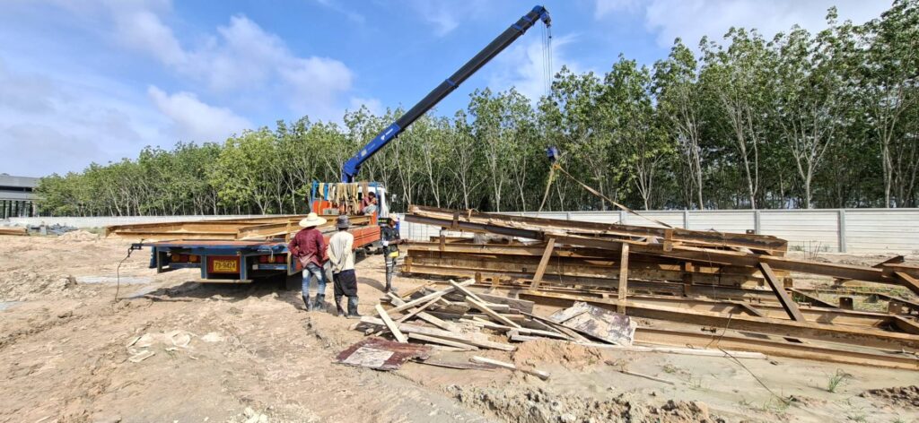 รถเฮี๊ยบ 10 ล้อช่วยให้การขนย้ายภายในไซต์งานเป็นเรื่องง่าย ไม่ต้องใช้แรงงานคนจำนวนมาก ลดความเสี่ยงจากการยกของหนัก และช่วยให้งานดำเนินต่อได้อย่างรวดเร็วตามแผนงานก่อสร้าง ทีมงานพิชยาเครนสื่อสารกันอย่างเป็นระบบ ควบคุมงานยกด้วยผู้เชี่ยวชาญ เพื่อให้เหล็กบีมทุกชิ้นถูกวางในตำแหน่งที่ต้องการอย่างปลอดภัยและเรียบร้อย