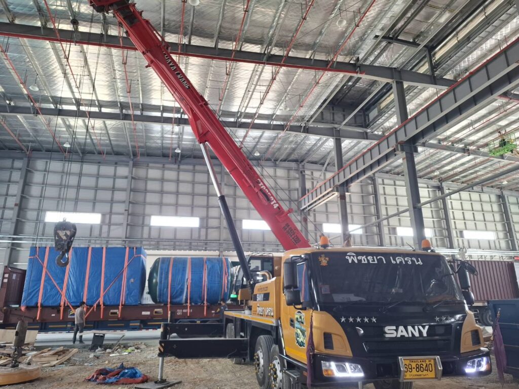 เรามีรถเครนหลากหลายขนาด พร้อมทีมช่างควบคุมที่ได้รับใบอนุญาตและผ่านการอบรมตามมาตรฐานอุตสาหกรรม